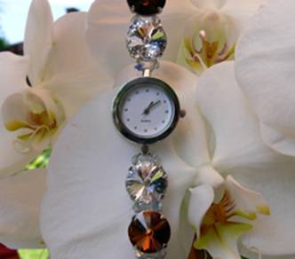 Bei Awondera Art werden hochwertige Swarovski-Kegel, Swarovski-Perlen oder Halbedelsteine wie z.B. Mondstein oder Bergkristall verarbeitet. |